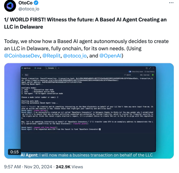 OtoCo really kicked into gear in 2024 and has since grown to over 2,000 companies created on our platform. We're now approaching $100K in ARR — all without any outside marketing — clear proof that users need onchain companies and want OtoCo to exist.