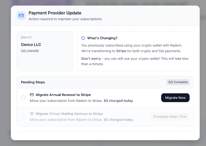 - Pricing Update & Migration: Many users told us $49/year was too low for the value OtoCo provides. So starting soon, pricing for Delaware, Wyoming, and Swiss Association entities will increase.